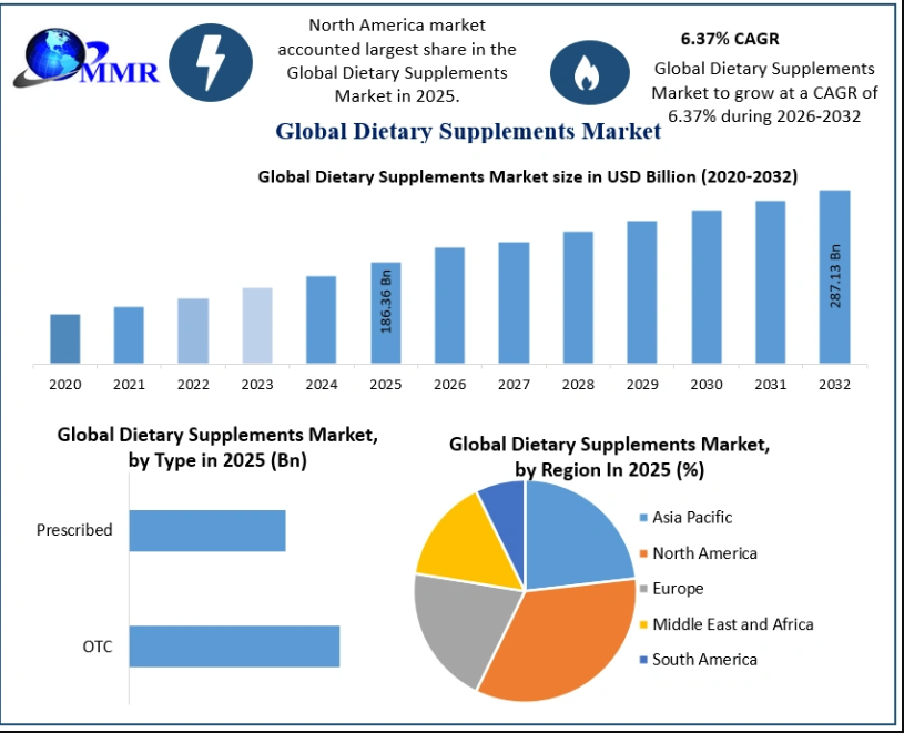 The Global Dietary Supplements Market was valued at USD XX billion in 2024 and is expected to grow at a CAGR of XX% during the forecast period (2025–2032). The market growth is driven by increasing health awareness, rising demand for preventive healthcare, and growing adoption of dietary supplements across the globe.