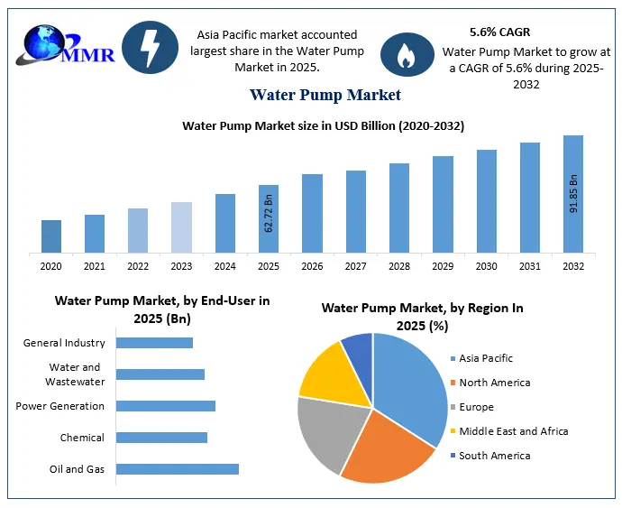 The global water pump market is poised for steady growth, driven by increasing demand for water management solutions, infrastructure development, and agricultural expansion. The integration of smart technologies and the shift toward energy-efficient and sustainable solutions are expected to shape the future of the market.