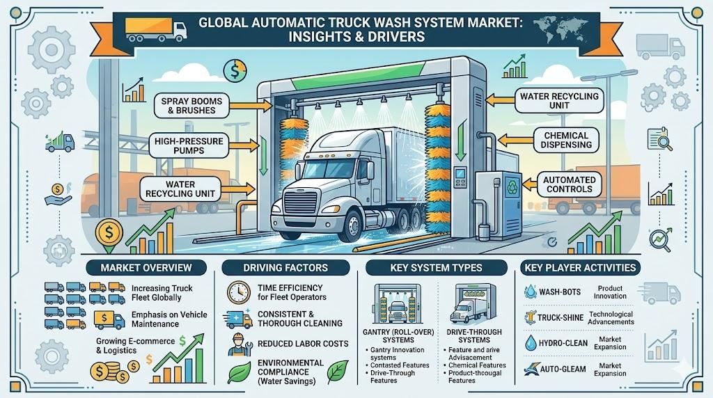 The global Automatic Truck Wash System Market is witnessing a transformative phase as the transportation and logistics sectors prioritize vehicle maintenance and operational efficiency. An automatic truck wash system serves as a specialized mechanical solution designed to clean large scale commercial vehicles such as heavy duty trucks, trailers, and tankers. These systems are increasingly preferred over manual washing due to their ability to deliver consistent results in a fraction of the time. As fleet operators face rising pressure to maintain professional brand images and adhere to strict environmental regulations, the adoption of automated cleaning technology has become a strategic necessity across the globe.