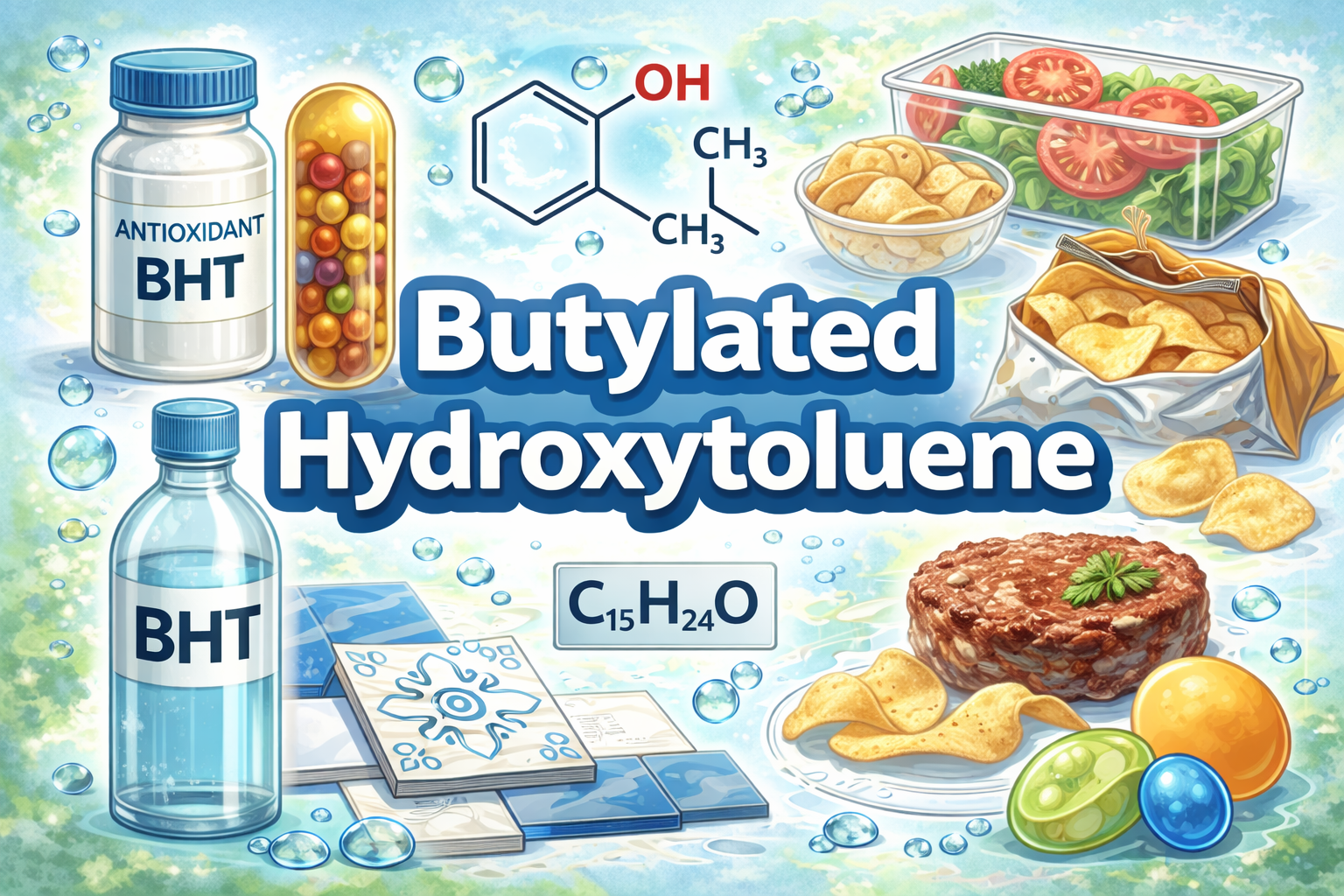 Butylated Hydroxytoluene (BHT) is a synthetic phenolic antioxidant widely used across food, plastics, cosmetics, pharmaceuticals, and industrial applications. It is primarily used to prevent oxidation, enhance product stability, and extend shelf life in fats, oils, and polymer-based materials, making it an essential additive across modern manufacturing and consumer product industries.