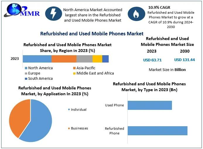 Anticipated Growth in Revenue: The Refurbished and Used Mobile Phones Market size reached USD 63.71 Bn in 2023 and is expected to reach USD 131.44 Bn by 2030, growing at a CAGR of 10.9 % during the forecast period.